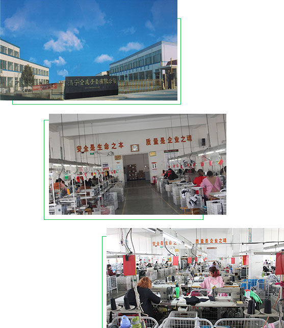 工廠始建于1999年9月,總投資8500萬人民幣,占地面積120畝,車間建筑面積53000平方米,倉庫8500平方米,現(xiàn)有員工960名,各種機(jī)器設(shè)備985臺(tái),15臺(tái)160頭刺繡機(jī),3臺(tái)多功能電腦車,年生產(chǎn)主導(dǎo)產(chǎn)品手套360萬雙,是中國海關(guān)AA 類企業(yè),是嘉祥縣手套協(xié)會(huì)會(huì)長單位。